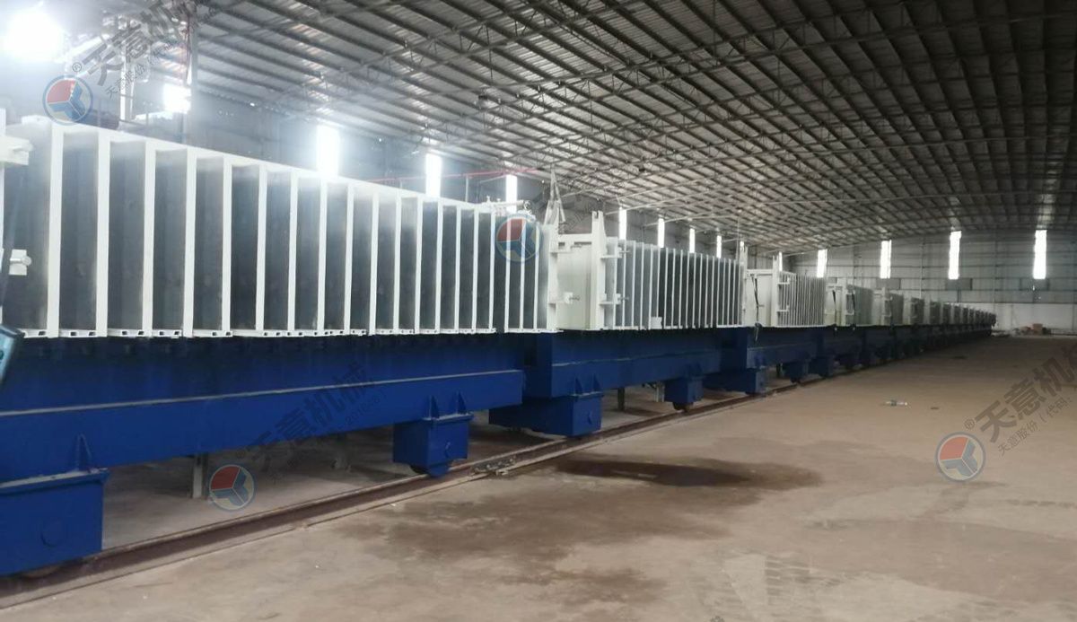 TY20型輕質(zhì)墻板生產(chǎn)線包括:墻板成型機(jī)、整體穿抽管系統(tǒng)、發(fā)泡系統(tǒng)、水箱、電子計(jì)量儲料倉、螺旋上料輸送機(jī)、儲料罐、螺旋輸送機(jī)、EPS熟化料倉、硫化干燥床、EPS預(yù)發(fā)機(jī)、數(shù)控配電室、發(fā)泡攪拌機(jī)、整體出板系統(tǒng)、叉車、成品堆放區(qū)、擺渡車。
